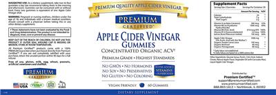 - All Premium Certified products come with a 100% Premium Guarantee when purchased directly from Premium Certified. If you are not completely satisfied with your purchase return the unused portion within 90 days for a full refund. Free of soy gluten milk egg wheat peanuts artificial sweeteners and shellfish. Non GMO Premium quality apple cider vinegar Concentrated organic ACV With added vitamins + superfoods Premium grade Highest standards No GMOs No hormones No soy No preservatives No gluten No coloring Vegan friendly