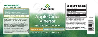 - High powered system cleanser and diet aid Supports a healthy weight Supports healthy glucose metabolism Each tablet contains twice the apple cider vinegar powder as our original Apple Cider Vinegar tablet. Detoxification Support Double Strength Formula Apple Cider Vinegar 200 mg per tablet