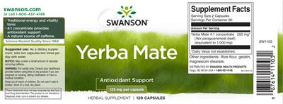 - Traditional energy and vitality tonic 4:1 concentrate provides antioxidant support A natural source of caffeine Yerba Mate 125 mg per capsule Antioxidant support