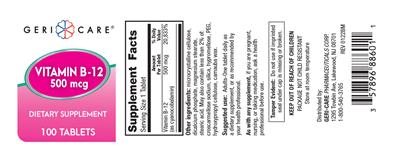 | Vitamin B12 | vitamin | 500 | mcg | 20833 | Adults and children 4 or more years of age | 1 Tablet(s) |