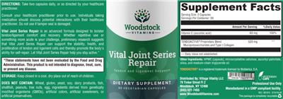 - Vital Joint Series Repair is an advanced formula designed to bolster tendon/ligament comfort and recovery. Whether repetitive use or something more acute is your challenge preliminary research suggests that Vital Joint Series Repair can support the stability health and proliferation of tendon and ligament cells and thereby promote the body's ability to self-repair. Let Vital Joint Series Repair help you stay active! Does not contain: Wheat gluten yeast soy dairy products fish shellfish peanuts tree nuts egg ingredients derived from genetically modified organisms (GMOs) artificial colors artificial sweeteners or artificial preservatives. Tendon and ligament support Vegetarian caps Manufactured in a GMP compliant facility.