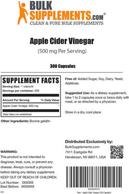| Apple Cider Vinegar | botanical | 500 | mg | N/A | Adults and children 4 or more years of age | 1 Capsule(s) |