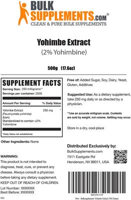 | Yohimbe Bark Extract | botanical | 250 | mg | N/A | Adults and children 4 or more years of age | 250 mg |