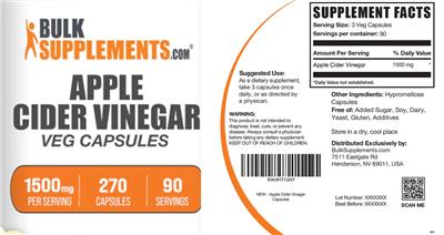 - Apple Cider Vinegar veg capsules 1500mg per serving Free of: Added sugar soy dairy yeast gluten additives