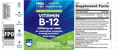 | Vitamin B12 | vitamin | 1000 | mcg | 41667 | Adults and children 4 or more years of age | 1 Tablet(s) |