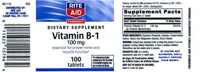 | Thiamine | vitamin | 100 | mg | 8333 | Adults and children 4 or more years of age | 1 Tablet(s) |