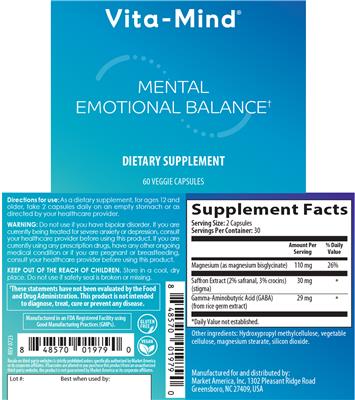 | Saffron Stigma Extract | botanical | 30 | mg | N/A | Adults and children 4 or more years of age | 2 Capsule(s) |