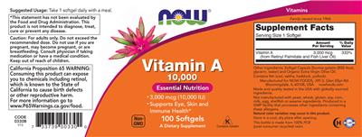 - Essential nutrition Supports eye skin and immune health Vitamin A 10000 3000 mcg (10000 IU) Non-GMO Triangle K (Kosher) Contains Gelatin Triangle K (Kosher) Contains Gelatin Made and quality tested in the USA with globally sourced ingredients. Not manufactured with yeast wheat gluten soy corn milk egg shellfish or sesame ingredients. Natural color variation may occur in this product. Crescent H Halal
