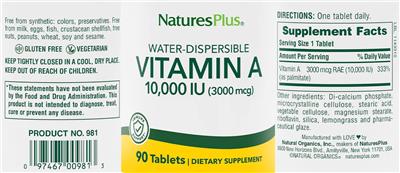 | Vitamin A | vitamin | 3000 | mcg RAE | 333 | Adults and children 4 or more years of age | 1 Tablet(s) |
