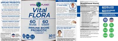 - What to look for in an immune probiotic 60 Billion live cultures Formulated with 60 billion live probiotic cultures in every capsule Vital Flora contains the potency that you want. 60 Vital probiotic strains A healthy gut contains a highly diverse balance of good microbes. Vital Flora contains multiple strains of Lacto and Bifido bacteria to more closely mirror the natural diversity of the human gut. Organic mushroom blend Mushrooms are known to support your body's natural immunity. Immune Biome contains a diverse blend of 7 organic mushrooms. Organic prebiotic blend Prebiotics are special types of fiber from plants that help feed beneficial bacteria in our digestive tracts. Vital Flora contains a blend of 7 different organic prebiotics Delayed release capsules Taken any time of day with or without food Vital Flora's delayed release capsules help ensure more probiotics reach the intestinal tract where you want them. Quality & Purity Guaranteed 60 Billion live cultures 60 strains of probiotics +7 Mushrooms +7 Prebiotics Non GMO Gluten free Vegan Diversity if the key to immune biome Our bodies naturally contain many different types of good bacteria. Immune Biome contains a diverse blend of 60 probiotic strains to support immune and digestive health. It also contains 7 different functional mushrooms known to support our body's natural immunity and 7 plant-based prebiotics to help feed the diversity of good bacteria in our gut. Contains no GMOs yeast wheat gluten dairy tree nuts sale shellfish sugar animal products binders fillers or artificial ingredients. Dairy free Soy free True strain transparency