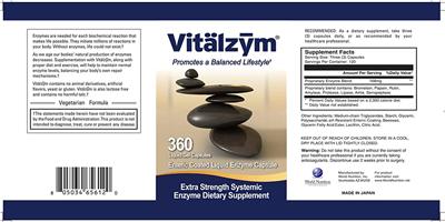 - Enzymes are needed for each biochemical reaction that makes life possible. They initiate millions of reactions in your body. Without enzymes life could not exist. As we age our bodies' natural production of enzymes decreases. Supplementation with Vitalzym along with proper diet and exercise will help to maintain normal enzyme levels balancing your body's own repair mechanisms. Vitalzym contains no animal derivatives artificial flavors yeast or gluten. Vitalzym is also lactose free and contains no harmful talc. Vegetarian formula Promotes a balanced lifestyle Enteric coated liquid enzyme capsule Made in Japan