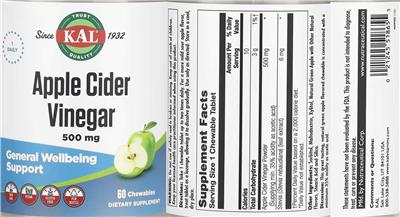 | Apple Cider Vinegar; Powder | botanical | 500 | mg | N/A | Adults and children 4 or more years of age | 1 Chewable Tablet(s) |