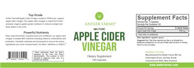 - Top grade Antler Farms Apple Cider Vinegar contains 100% pure organic apple cider vinegar. Our apple cider vinegar is made from fresh-pressed organic apples grown outdoors in natural sunlight and fresh water in the USA. Powerful nutrients Raw slow fermented unpasteurized and unfiltered our apple cider vinegar is loaded with nutrients including vitamins antioxidants and probiotics. Carefully collected and processed to ensure the active ingredients are never compromised. No fillers additives or GMOs. 100% pure Product of USA