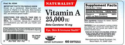 - Vitamin A 25000 IUBeta-Carotene 15 mg