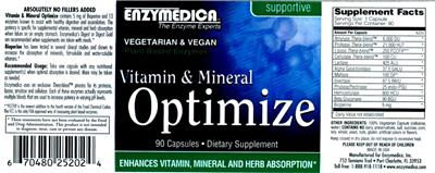 - Absolutely no fillers added Vitamin & Mineral Optimize contains 5 mg of Bioperine and 13 enzymes known to assist with healthy digestion and assimilation. Vegetarian & Vegan Contains no dairy preservatives salt sucrose corn soy wheat yeast nuts gluten artificial colors or flavors.
