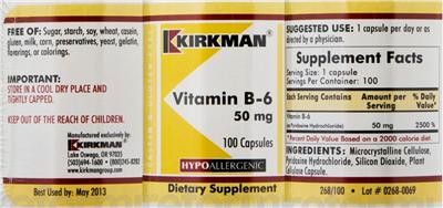 | Vitamin B6 | vitamin | 50 | mg | 2500 | Adults and children 4 or more years of age | 1 Capsule(s) |