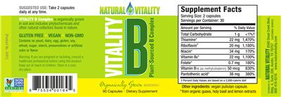 - Organically Grown INGREDIENTS VITALITY B Complex is organically grown in soil and includes phytochemicals and other natural cofactors found in nature.
