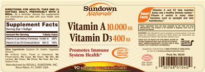 - EASY TO SWALLOW SOFTGEL PLEASE RECYCLE Promotes Immune System Health* Smart FactsVitamins A and D3 help maintain bones and a healthy immune system.* Vitamin A assists in many other functions such as eyesight and skin maintenance.*