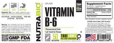 | Vitamin B6 | vitamin | 50 | mg | 2500 | Adults and children 4 or more years of age | 1 Vegetable Capsule(s) |