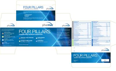 - Pharmax Four Pillars is the most convenient way to create a solid nutritional foundation by providing the required daily levels of essential nutrients in four easy-to-take capsules or tablets. 3 AntioxidantsNeutralizes harmful oxidation that damages cellular integrity and body tissues.* Pack size: 30 day supply To enjoy optimum health nutritional science recognizes that alongside a well-balanced diet it is beneficial to supplement with the following essential nutrients: 1 vitamins and minerals 2 omega-3 fatty acids 3 antioxidants 4 probiotics
