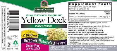 | Yellow Dock (Rumex crispus) root extract | botanical | 2000 | mg | N/A | Adults and children 4 or more years of age | 2 mL |