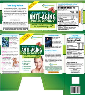 - Anti-Aging Total Body Daily Defense helps to counter the effects of aging while supporting whole body health. Anti-Aging Total Body Daily Defense is a doctor-developed formula that can nourish and support the body’s cells tissues and vital organs. Applied Nutrition is committed to developing science-based products that exceed the highest standards for quality and purity. As a leader in innovation we continuously strive to bring forward new ideas and groundbreaking formulas that enhance health and well-being. To view our entire line of products please visit us online at: www.AppliedNutrition.com
