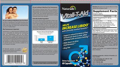 - Are you looking to help boost free testosterone? Clinically studied ingredient Human clinical study results% Change in free testosterone is against baselineBoth placebo & test group also exercised.48% Placebo group96% Key ingredient in Vitali-T-Aid The results as reported by study participants included improvement in sexual behavior satisfaction and intensity of orgasm as well as overall libido or sexual functioning. Helps increase libido ~ Helps boost sex drive & performance Made in the USA from imported ingredients Are you Looking to Help Boost your Sex Drive? Let’s face it testosterone is one of the hormones that makes men men. Testosterone affects many functions of the male body one of the most noticeable being sex drive or healthy libido.Why testosterone is importantTestosterone is a critical hormone produced in men and is responsible for inducing and maintaining male sex characteristics such as sex drive. Free testosterone is testosterone found in the blood stream that is bio-available and it represents between one to four percent of the total amount of testosterone in a man’s body. It is called “free” because it is not bound to any substance or another hormone in the performance of a specific function and is therefore available for use as it is needed in the body. All Naturade products are quality tested to ensure freshness and potency through their expiration dates.