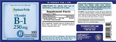 | Thiamine | vitamin | 250 | mg | 20833 | Adults and children 4 or more years of age | 1 Tablet(s) |