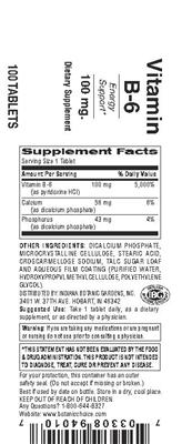 | Vitamin B6 | vitamin | 100 | mg | 5000 | Adults and children 4 or more years of age | 1 Tablet(s) |