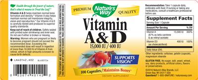 | Vitamin A | vitamin | 15000 | IU | 300 | Adults and children 4 or more years of age | 1 Capsule(s) |
