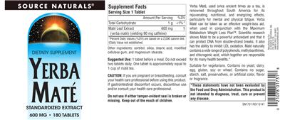 Suggested Use (Overview): Suggested Use: 1 tablet before a meal. Do not exceed two tablets daily. One tablet is approximately equal to 1 cup of mate tea. Yerba Mate can be taken as an effective weight-loss aid; when used in conjunction with the Maximum Metabolism Weight Loss Plan.