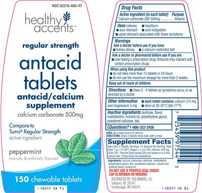- Calcium carbonate 500mg Drug FactsActive ingredient (in each tablet) PurposeCalcium carbonate USP 500mg...............Antacid Other InformationEach Tablets Contains: Calcium 215 mg and magnesium 5 mg Inactive Ingredients Dextrose flavor maltodextrin mineral oil polyethylene glycol powdered cellulose talc Uses: As a daily source of calcium