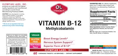 | Vitamin B12 | vitamin | 500 | mcg | 8333 | Adults and children 4 or more years of age | 1 Chewable Tablet(s) |