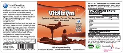 - Vitalzym+ also includes magnesium to help support skeletal integrity bone density energy production. Vitalzym is lactose free and contains no animal derivatives artificial flavors or colors yeast gluten or talc. Systemic and digestive formula plus Magnesium Suitable for vegetarians