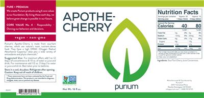 - Vegan Non-GMO Purium's Apothe-Cherry is made from sour/tart cherries which are nature's most nutrient-dense food. They have a high ORAC (Oxygen Radical Absorbance Capacity) value plus a wide variety of antioxidants and phyto chemicals.