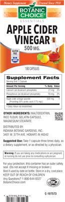 | Apple Cider Vinegar powder | botanical | 500 | mg | N/A | Adults and children 4 or more years of age | 1 Capsule(s) |