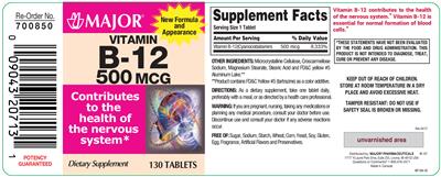 | Vitamin B12 | vitamin | 500 | mcg | 8333 | Adults and children 4 or more years of age | 1 Tablet(s) |