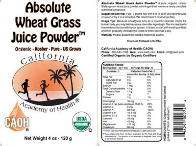 - Kosher Absolute Wheat Grass Juice Powder is pure organic United States grown wheat juice powder centrifugal dried to ensure nearly complete nutritional congruous.