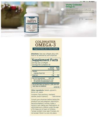 | Fish Oil concentrate | fat | 1470 | mg | N/A | Adults and children 4 or more years of age | 2 Softgel(s) |
