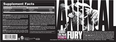 - Our Ironclad Guarantee: Animal is dedicated to being the best in the business no two ways about it. If this product doesn't meet with your tough requirements for any reason let us know. When it comes to standing behind our products we don't mess around. That's the truth. EAC Animal Bring the Pain Who We Are; In 1983 Animal was founded with the birth of Animal Pak the venerable training 'pack' that started it all. Born from the needs and desires of pro bodybuilders Animal has grown prodigiously over the decades. Today Animal has stood the test of time and been proven in the trenches day in and day out. The name stands for trust integrity and a no nonsense approach to the game. What Animal Fury Is A powder keg of power Animal Fury is intended to bring the pain. A concentrated pre-training formula loaded with efficacious dosages of the most impactful ingredients Animal Fury is charged with everything the hardest training demands all in a single scoop. When it is time to blast the heavy iron and leave the weight room floor in rubble Animal Fury lights the fuse.